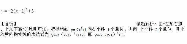 【解析】试题解析:由“左加右减、上加下减”的原则可知,把抛物线 y=-2x2+1 向右平移 1 个单位,再向 上平移 2 个单位,则平移后的抛物线的表达式为 y=-2(x-1)2+1+2,即 y=-2(x-1)2+3.