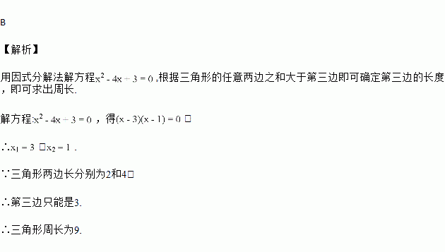 已知三角形的两边长分别为和,第三边的长是方程的解,则这个三角形的周长为( )