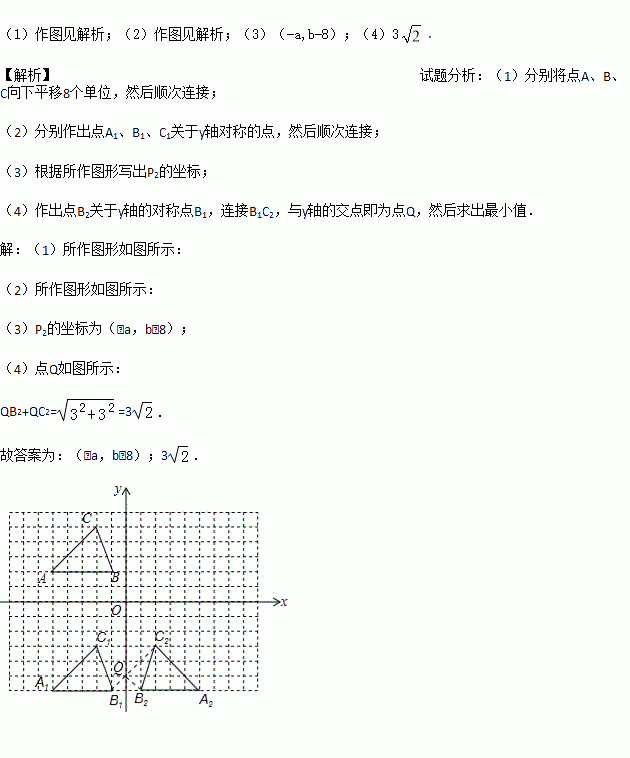 (1)把△ABC向下平移8个单位后得到对应的△A1B1C1,画出△A1B1C1;