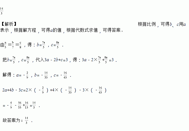 若==,且3a-2b+c=3,则2a+4b-3c=________.