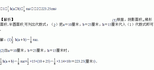 (2)当a=10厘米,b=25厘米,h=15厘米时,求阴影部分的面积.(π取3.14)