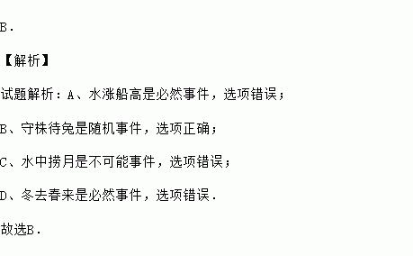 A.水涨船高 B.守株待兔 C.水中捞月 D.冬去春来
