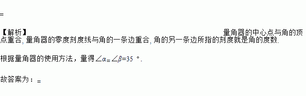 如图所示,将一个长方形沿图中的虚线折叠,请用量角器测量一下其中的∠α,∠β,得∠α________∠β.(填“>”“<”或“=”)
