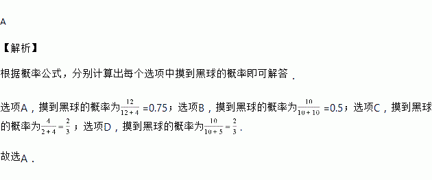 A. 12个黑球和4个白球 B. 10个黑球和10个白球