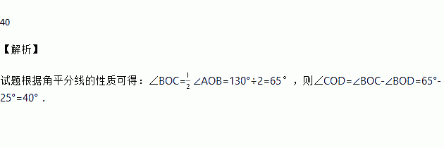 如图,OC是∠AOB的平分线,如果∠AOB=130°,∠BOD=25°,那么∠COD=________________°.