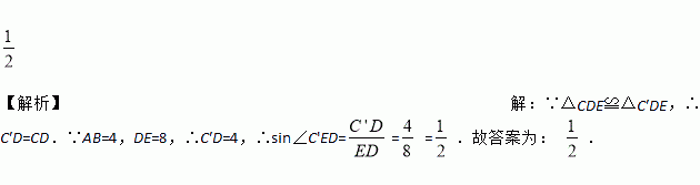 将矩形纸片ABCD(如图)那样折起,使顶点C落在C?处,测量得AB=4,DE=8,则sin∠C?ED为________________.