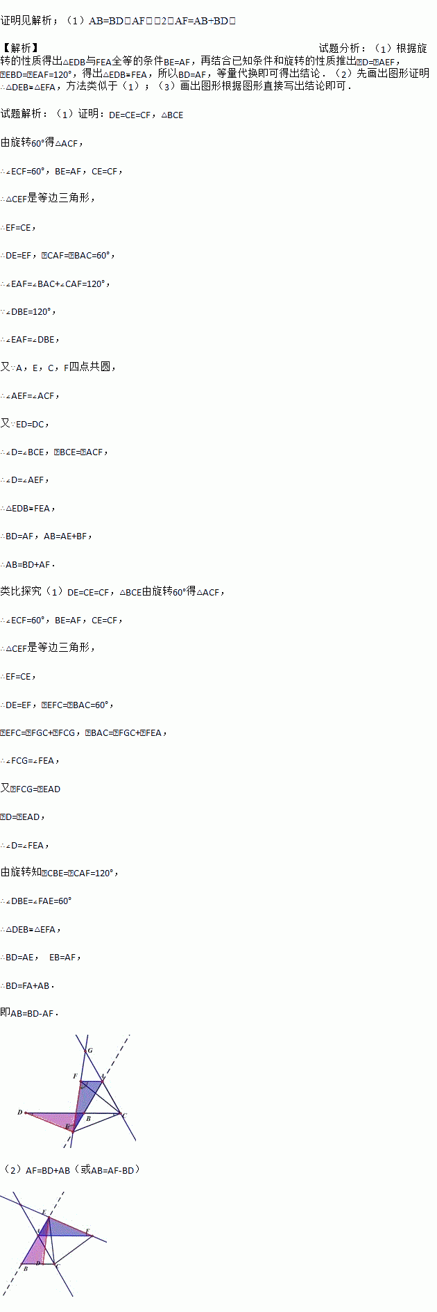 (1)如图②,如果点E在线段AB的延长线上,其他条件不变,线段AB,DB,AF之间又有怎样的数量关系?请说明理由