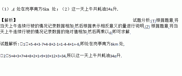处,规定向北方向为正,当天上午连续行驶情况记录如下(单位:千米):+5,﹣4,+3,﹣7,+4,﹣8,+2,﹣1.