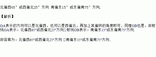 如图所示,射线OA表示___________方向,射线OB表示___________方向.