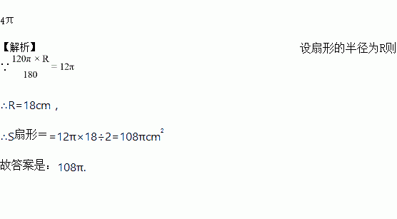 若扇形的圆心角为120°的弧长是12πcm,则这个扇形的面积是______________