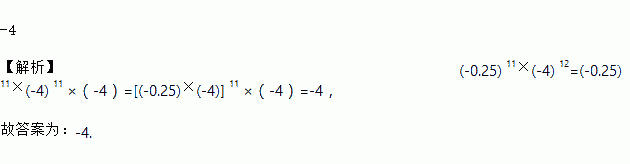 -4 【解析】(-0.25) 11×(-4) 12=(-0.25) 11×(-4) 11 ×(-4)=[(-0.25)×(-4)] 11 ×(-4)=-4, 故答案为:-4.