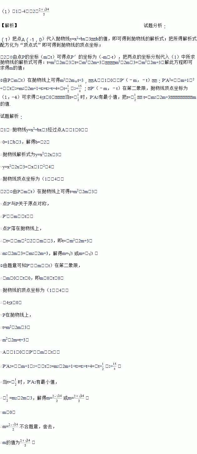 (2)P(m,t)为抛物线上的一个动点,P关于原点的对称点为P'.