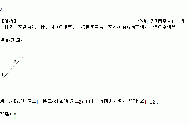 C. 第一次向右拐50°,第二次向右拐130° D. 第一次向左拐50°,第二次向左拐130°