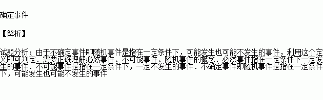 “抛出的蓝球会下落”,这个事件是 事件。(填“确定”或“不确定”)
