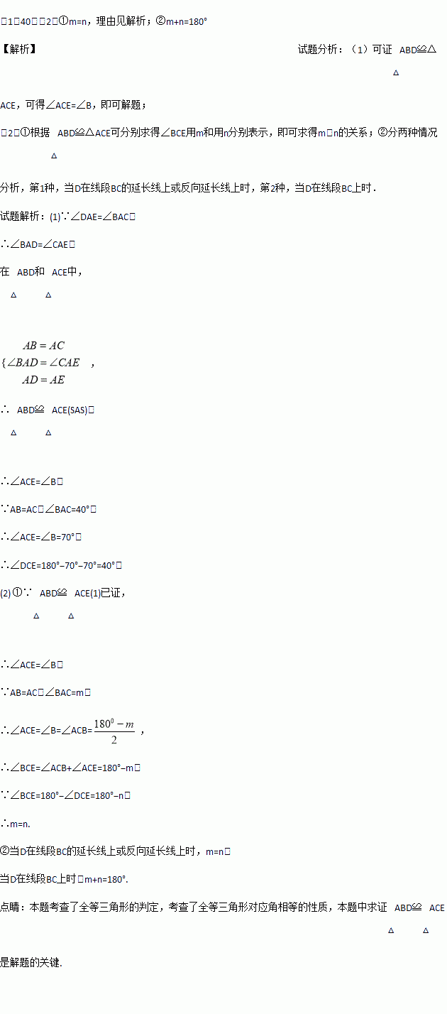 (2)设∠BAC=m,∠DCE=n.