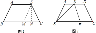 分析:(1)作DM∥AB交BC与点E.则四边形ABCD是平行四边形,△DMC是等边三角形,即可求得CD,BE的长度,从而求得该梯形的周长;过点D作DN⊥MC,在等边三角形DMC中利用特殊角的三角函数的定义求得DF的长度,根据梯形的面积公式解答即可;