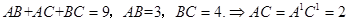 9cm,AB=3cm,BC=4cm,则A′C′= cm。