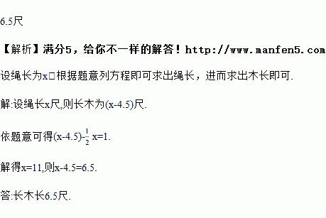 译文:“用一根绳子去量一根长木,绳子还剩余4.5尺,将绳子对折再量长木,长木还剩余1尺,问长木长多少尺?”