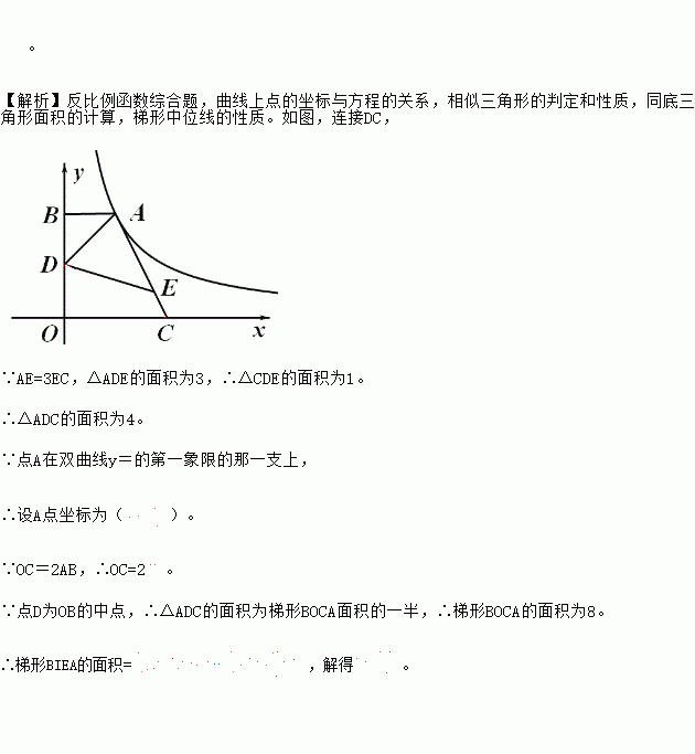 点C在x轴正半轴上,且OC=2AB,点E在线段AC上,且AE=3EC,点D为OB的中点,若△ADE