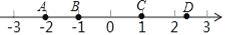 数轴上有A,B,C,D四个点,其中哪个点表示的数为1( )
