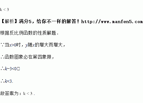 反比例函数的图象,当时,随的增大而增大,则的取值范围是________.