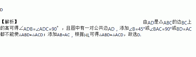 如图,已知AD是△ABC的边BC上的高,下列能使△ABD≌△ACD的条件是( )