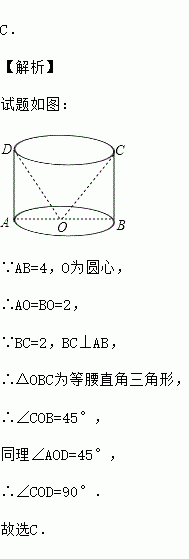 有一圆柱形的水池,已知水池的底面直径为4米,水面离池口2米,水池内有一小青蛙,它每天晚上都会浮在水面上赏月,则它能观察到的最大视角为( )