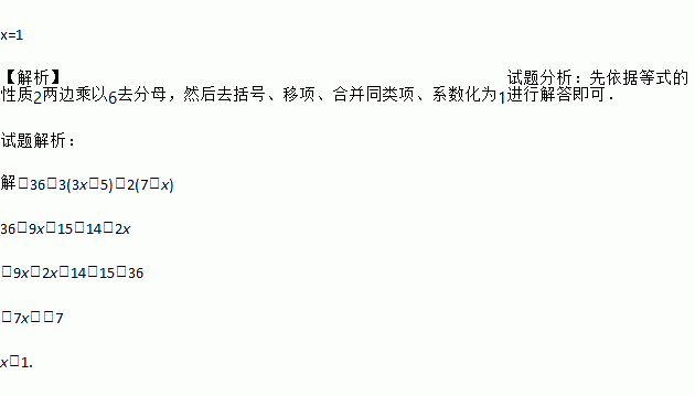C. 3(x+l)-(2x-3)=12 D. 3(x+1)-(2x-3)=6