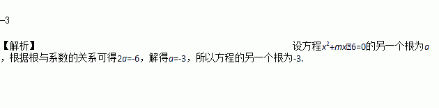 已知关于x的方程x2+mx﹣6=0的一个根为2,则另一个根是___.