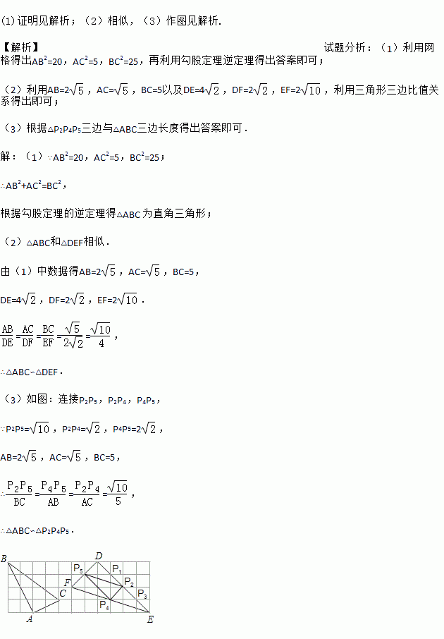 (3)画一个三角形,使它的三个顶点为P1,P2,P3,P4,P5中的3个格点并且与△ABC相似(要求:不写作法与证明).
