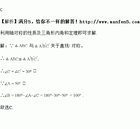 已知在Rt△ABC中,斜边AB=2BC,以直线AC为对称轴,点B的对称点是B',如图所示,则与线段BC相等的线段是____,与线段AB相等的线段是_______和_______,与∠B相等的角是________和_______,因此可得到∠B=________.