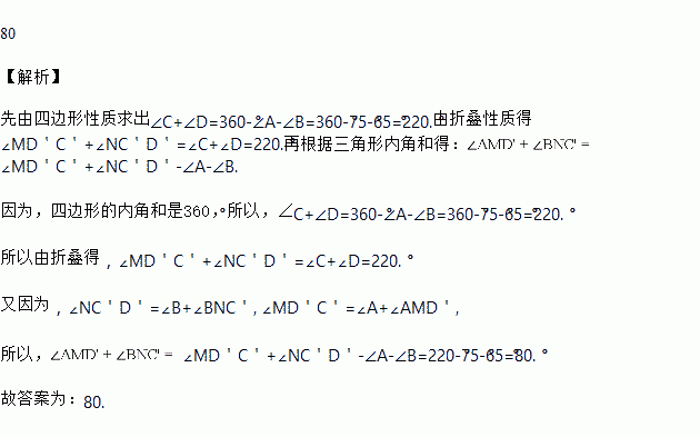 如图,四边形纸片ABCD中,,,将纸片折叠,使C,D落在AB边上的,处,折痕为MN,则______度.