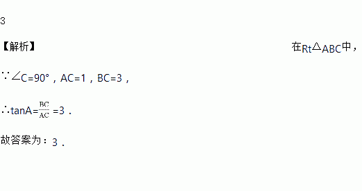 已知在Rt△ABC中,∠C=90°,AC=1,BC=3,那么tanA=_____.