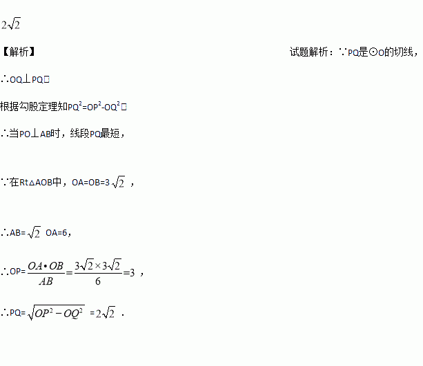 如图,在中, , ,⊙的半径为,点是边上的动点,过点作⊙的一条切线,切点为,则的最小值是__________.