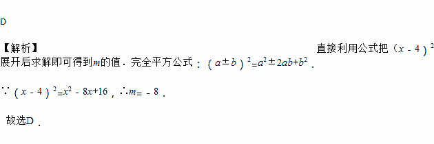 若等式(x-4)2=x2+mx+16成立,则m的值是( )