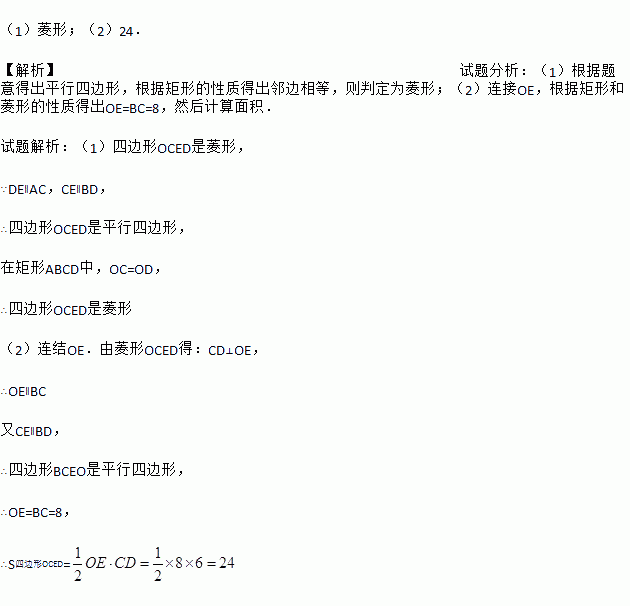 (2)若AB=6,BC=8,求四边形OCED的面积.