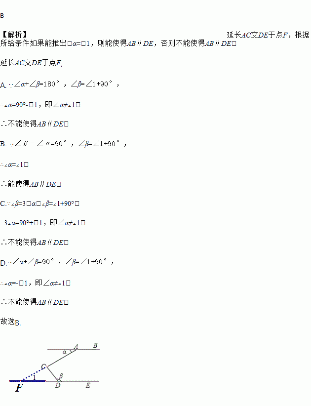 如图,点C是直线AB,DE之间的一点,∠ACD=90°,下列条件能使得AB∥DE的是( )
