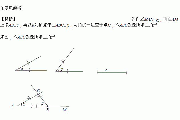 尺规作图,已知∠,∠β和线段![]()