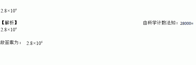 神舟十号飞船是我国“神州”系列飞船之一,每小时飞行约28000公里,将28000用科学记数法表示应为__公里.