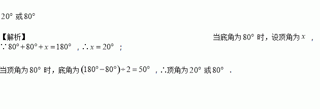 若等腰三角形的一个角为,则顶角为__________;