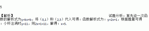 如图1,在某个盛水容器内,有一个小水杯,小水杯内有部分水,现在匀速持续地向小水杯内注水,注满小水杯后,继续注水,小水杯内水的高度y(cm)和注水时间x(s)之间的关系满足如图2中的图象,则至少需要________s能把小水杯注满.