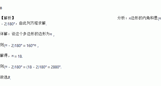 若一个多边形的每个内角都相等,且都为160度,则这个多边形的内角和是( )度