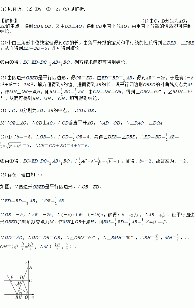 (3)是否存在这样的b值,使得四边形OBED为平行四边形?若存在,请求出此时四边形OBED对角线的交点坐标;若不存在,请说明理由.