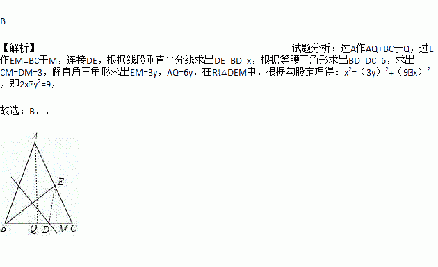 如图,在△ABC中,AB=AC,BC=12,E为AC边的中点,线段BE的垂直平分线交边BC于点D.设BD=x,tan∠ACB=y,则( )