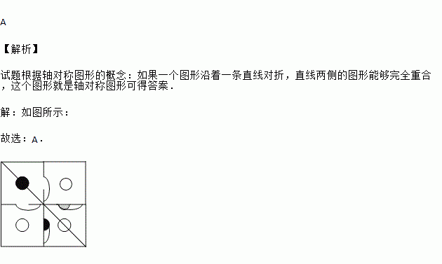 下列选项中有一张纸片会与如图紧密拼凑成正方形纸片,且正方形上的黑色区域会形成一个轴对称图形,则此纸片为何?( )