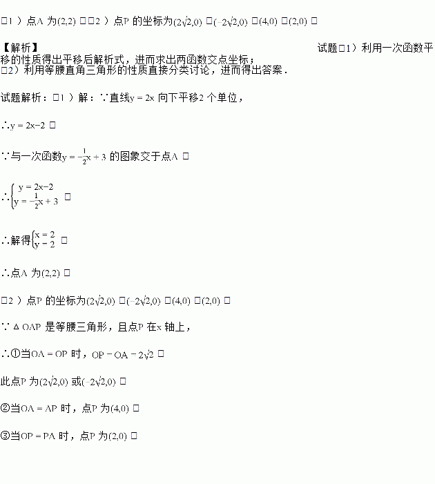在平面直角坐标系中,将直线向下平移个单位后,与一次函数的图象相交于点.