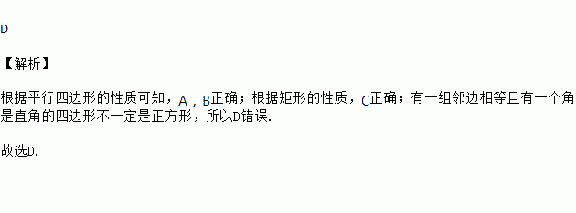 D. 有一组邻边相等且有一个角是直角的四边形是正方形