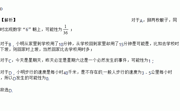 下列事件发生的可能性为0的是( )