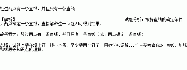 要在墙上钉一根小木条,至少要两个钉子,用数学知识解释为_________.