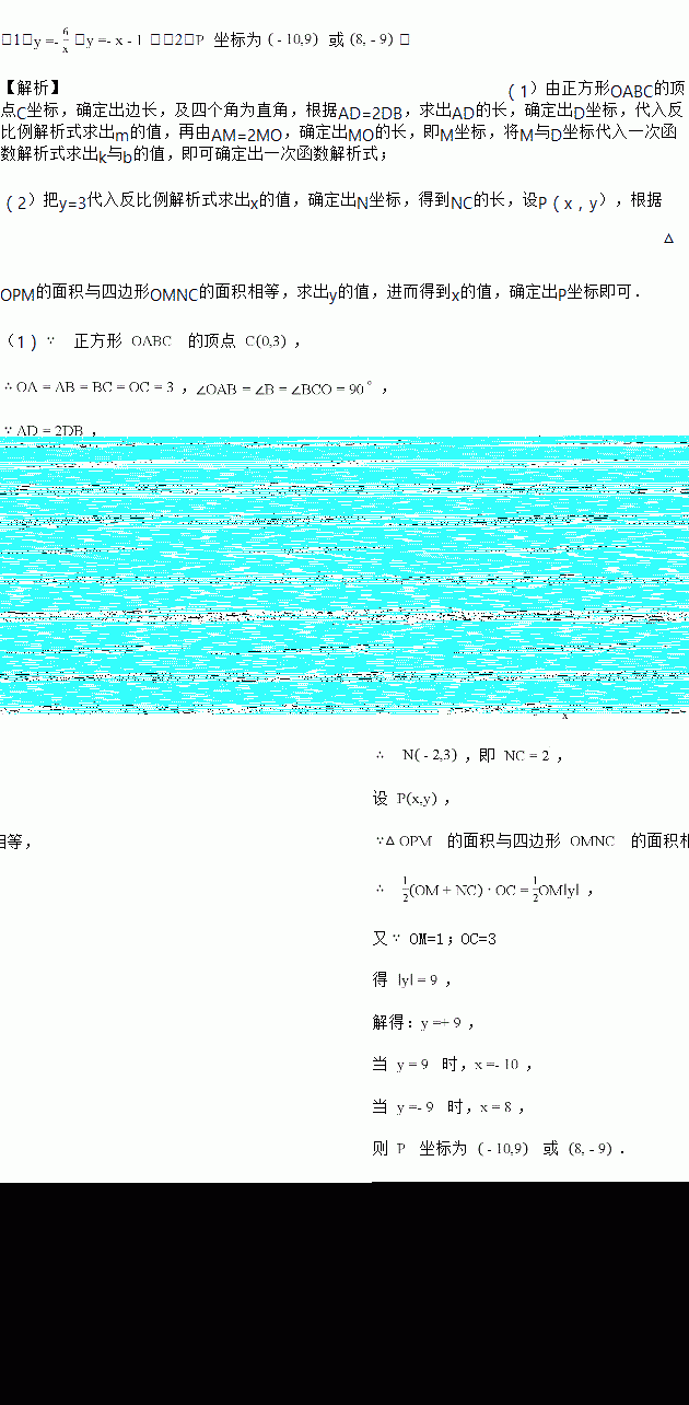 (1)直接写出反比例函数解析式 一次函数的解析式 ;